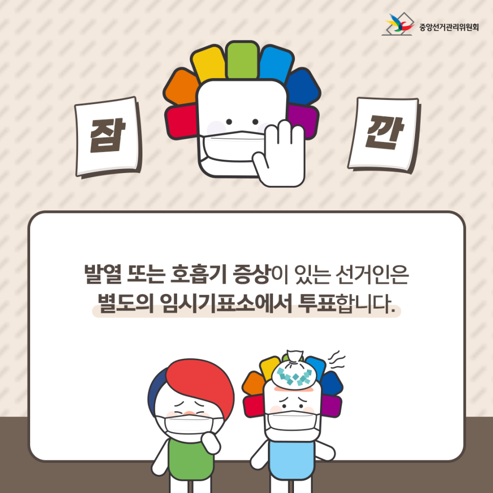 발열 또는 호흡기 증상이 있는 선거인은 별도의 임시기표소에서 투표합니다.
