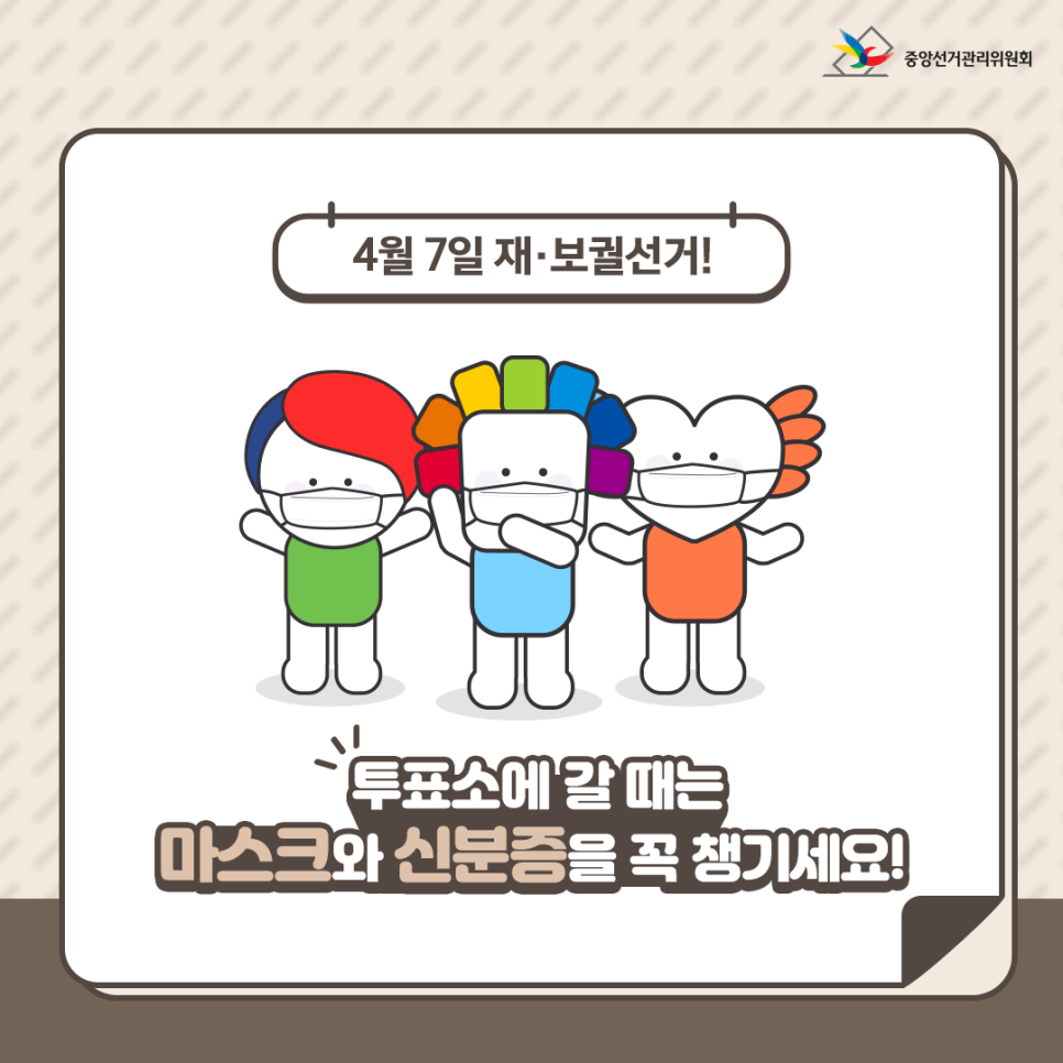 투표소에 갈 때는 마스크와 신분증을 꼭 챙기세요!