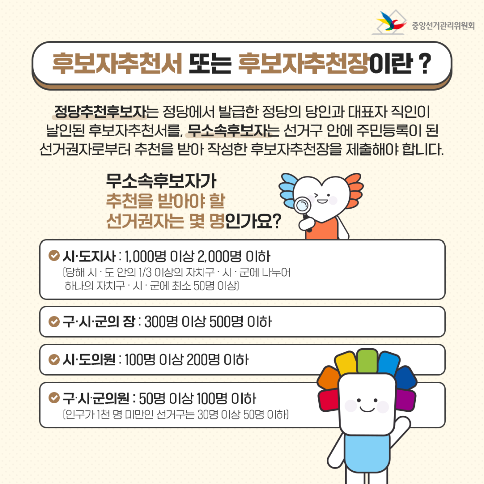 무소속후보자가 추천을 받아야 할 선거권자는 몇 명인가요?