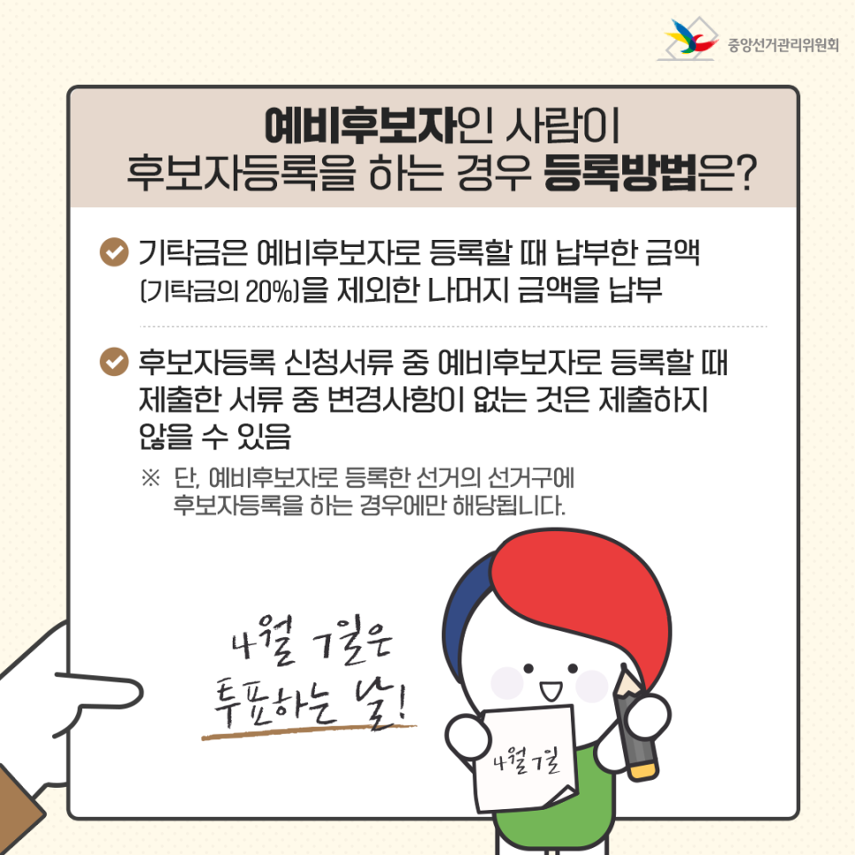※단, 예비후보자로 등록한 선거의 선거구에 후보자등록을 하는 경우에만 해당됩니다.