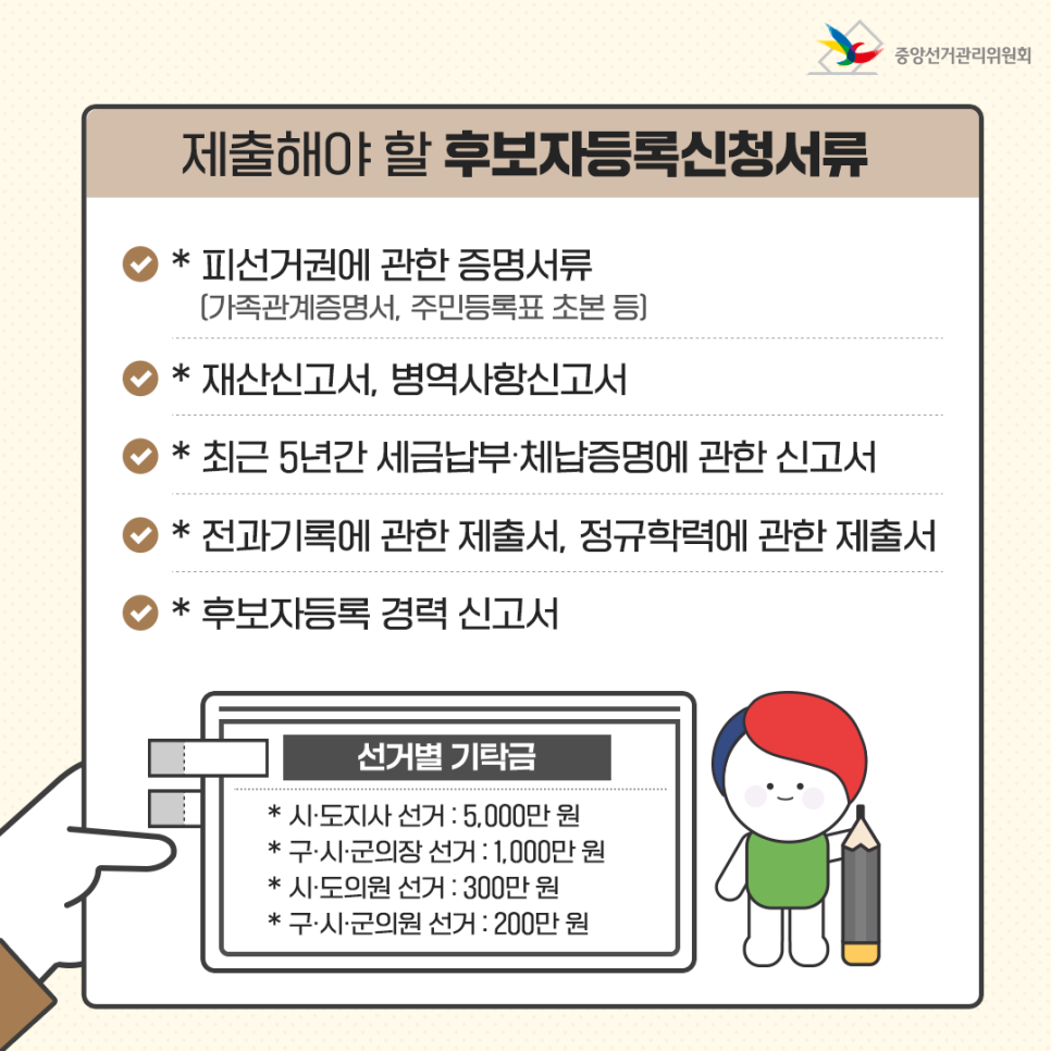 ✔ *피선거권에 관한 증명서류(가족관계증명서, 주민등록표 초본 등)