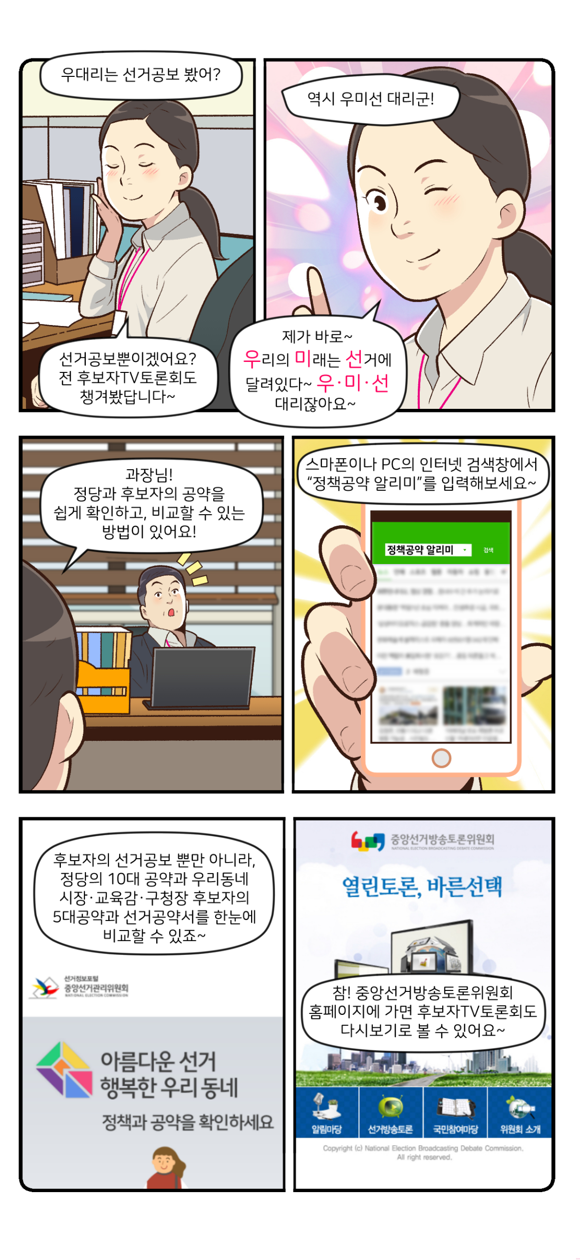 과장님! 정당과 후보자의 공약을 쉽게 확인하고 비교할 수 있는 방법이 있어요!