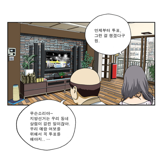 무슨소리야~ 지방선거는 우리 ㄹ동네 살림이 걸린 일이잖아. 우리 애랑 여보를 위해서 꼭 투표를 해야지..…