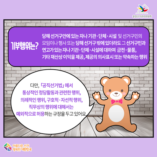 다만, 공직선거법에서 통상적인 정당활동과 관련한 행위,