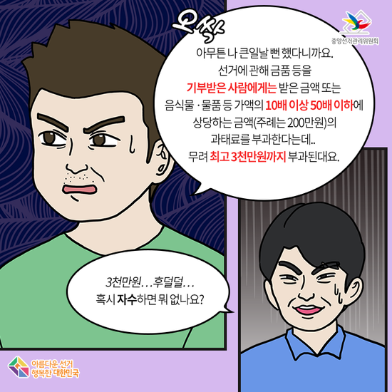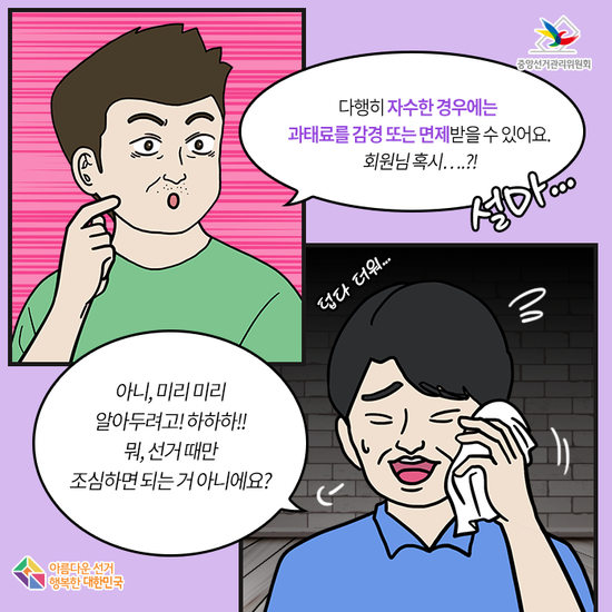 선거관리위원회에서 최고 5억원까지 포상금을 지급해요.