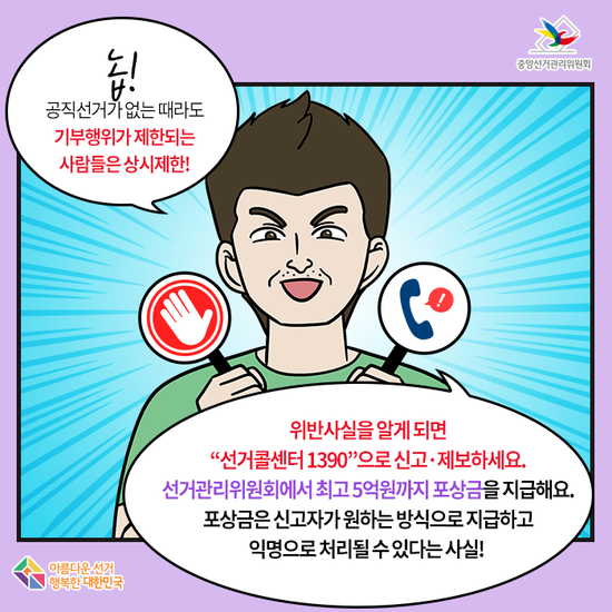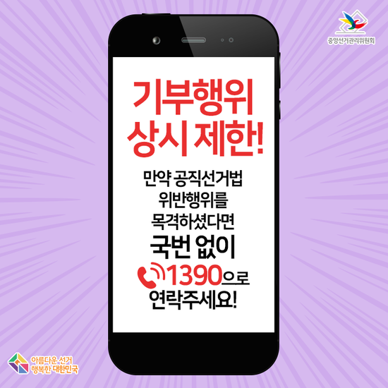 위반사실을 알게 되면 “선거콜센터 1390”으로 신고·제보하세요.