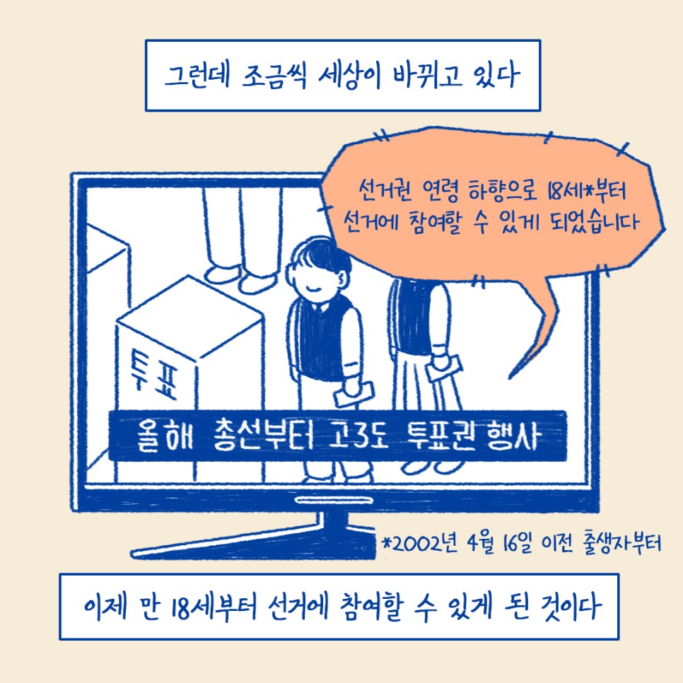 이제 만 18세부터 선거에 참여할 수 있게 된 것이다.