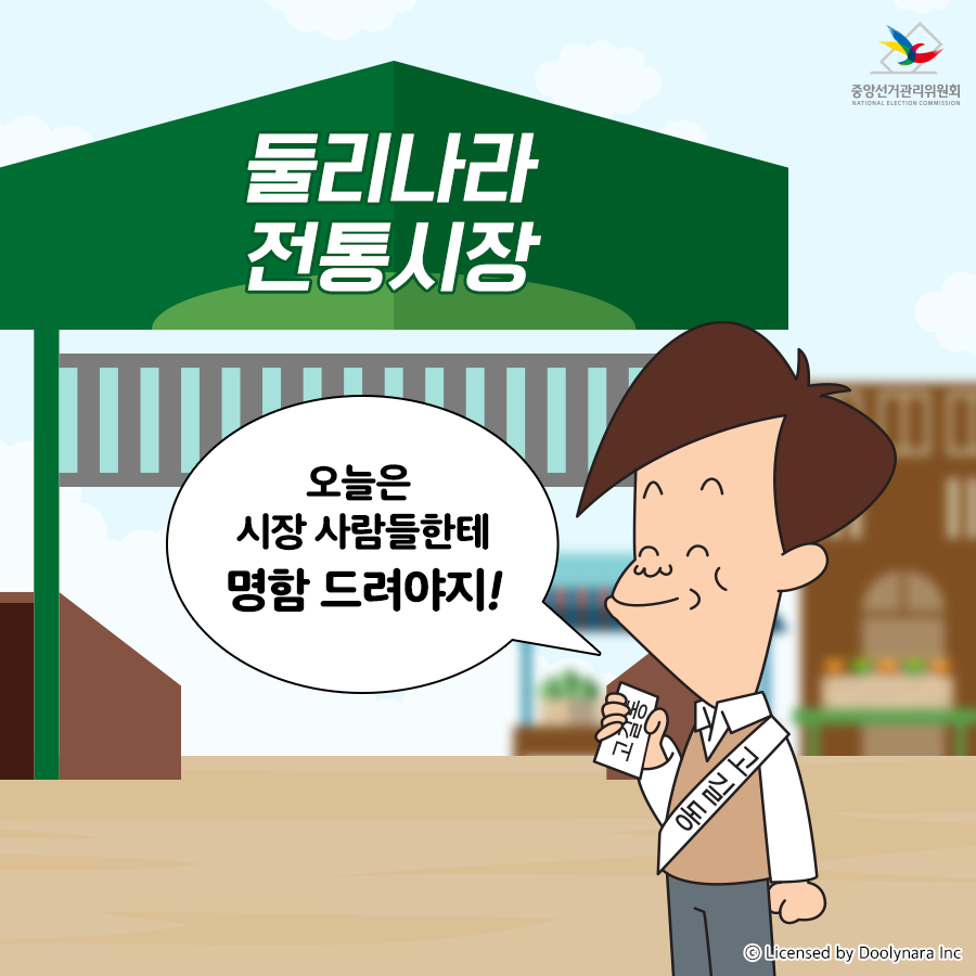 "오늘은 시장 사람들한테 명함 드려야지!"