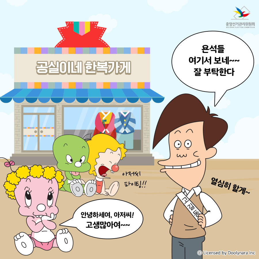 "안녕하세여 아저씨! 선거운동 하시나 봐여~"