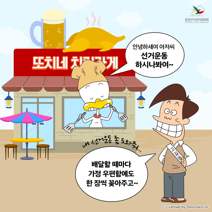 "안돼요~ 후보자만 명함 줄 수 있다고요!