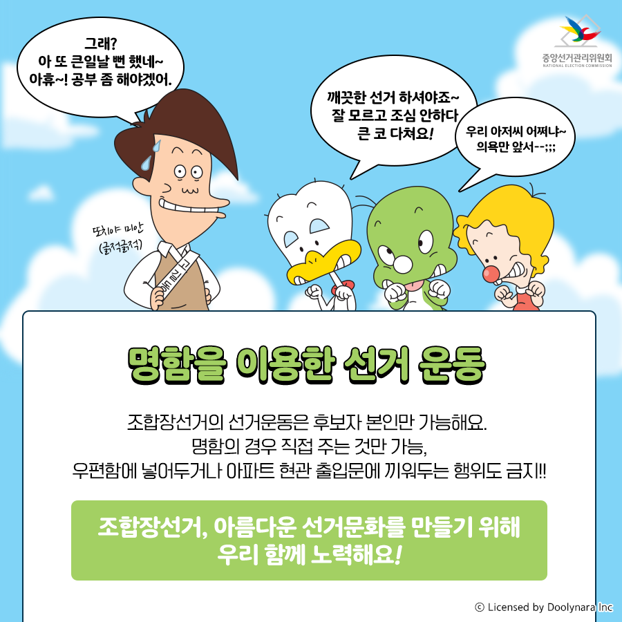 후보자만 할 수 있어요. 명함은 후보자만!!!