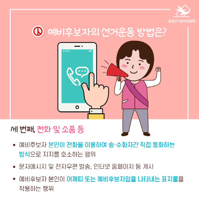 -예비후보자 본인이 전화를 이용하여 송·수화자간 직접 통화하는 방식으로 지지를 호소하는 행위