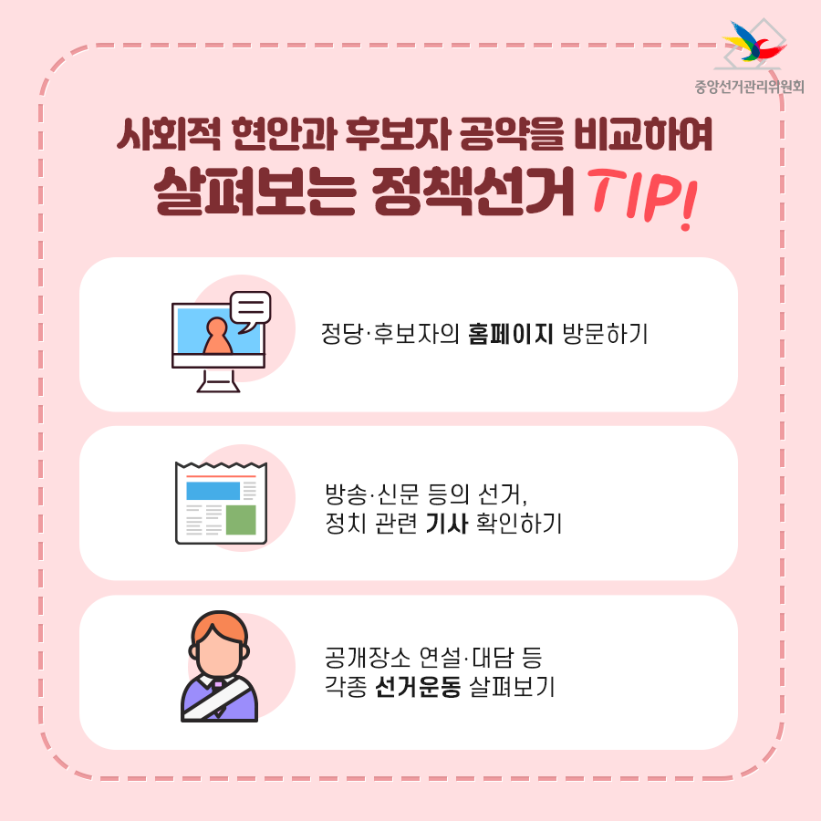 사회적 현안과 후보자 공약을 비교하여 살펴보는 정책선거 TIP!