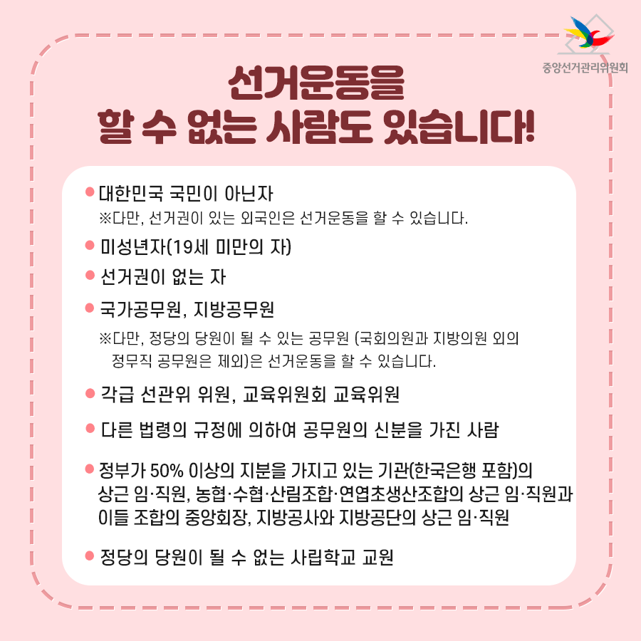대한민국 국민이 아닌자 ※ 다만, 선거권이 있는 외국인은 선거운동을 할 수 있습니다.