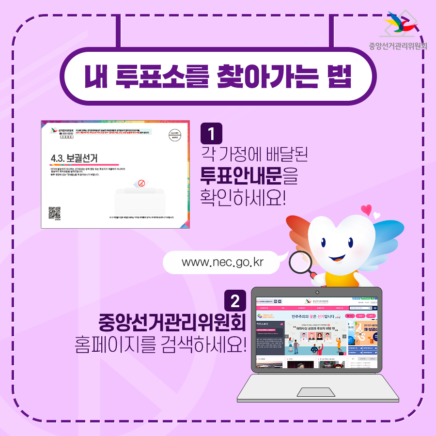 내 투표소를 찾아가는 법 1. 각 가정에 배달된 투표안내문을 확인하세요!