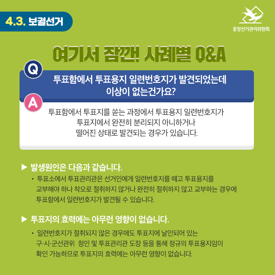 Q : 투표함에서 투표용지 일련번호지가 발견되었는데 이상이 없는건가요?