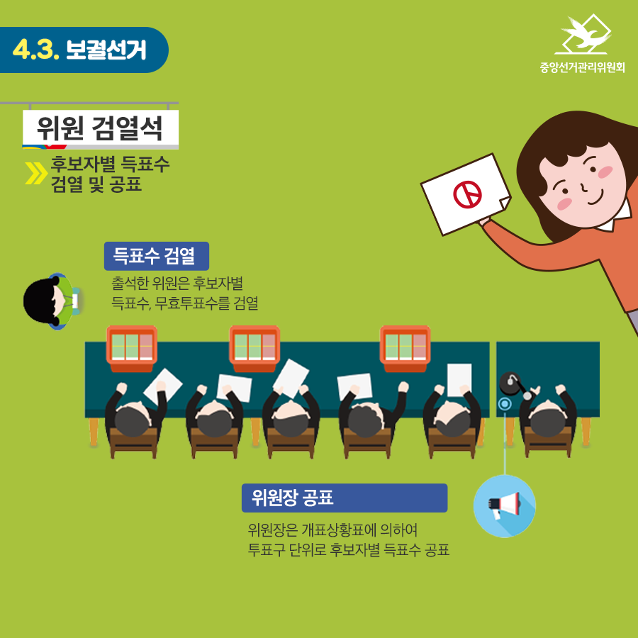 위원 검열석 : 후보자별 득표수 검열 및 공표