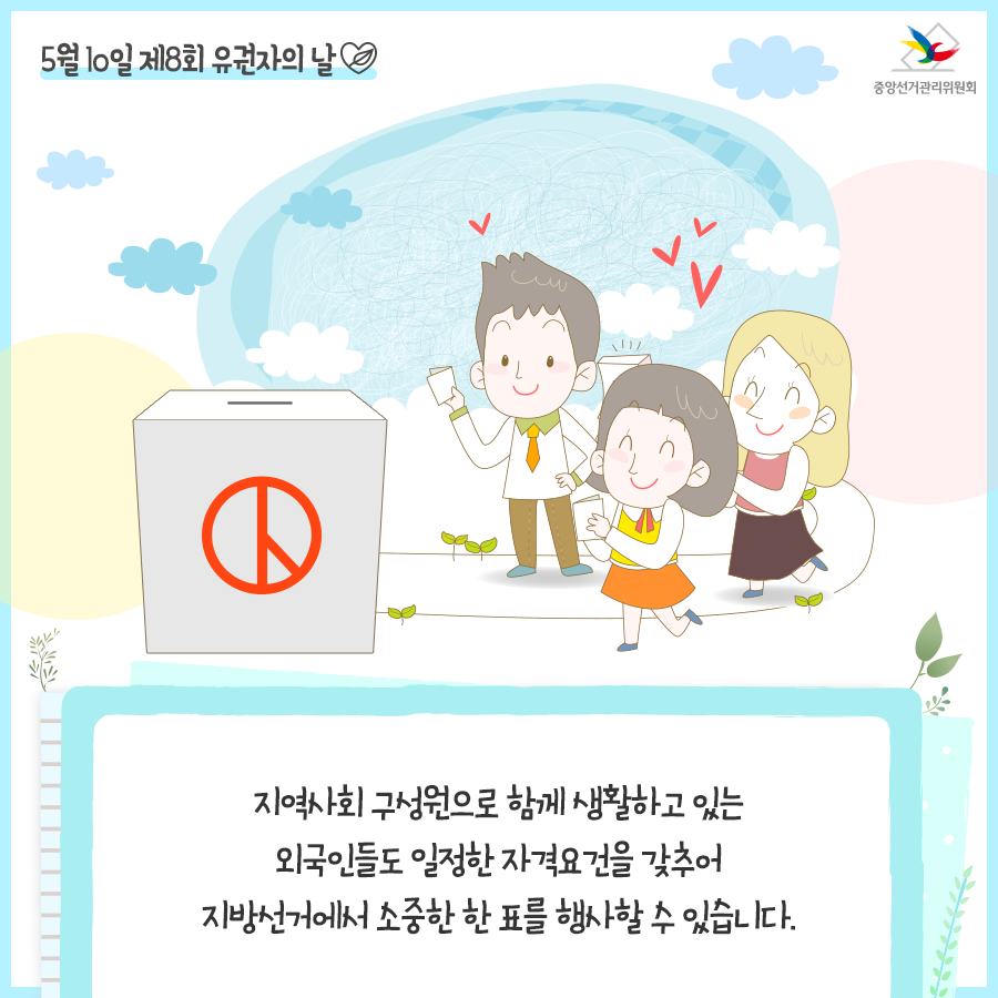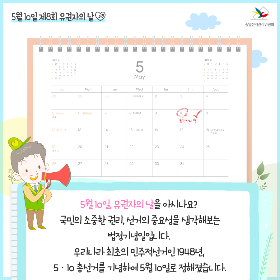 5월 10일 '유권자의 날'은 민주사회를 만들어가는 우리 모두를 위한 기념일입니다.