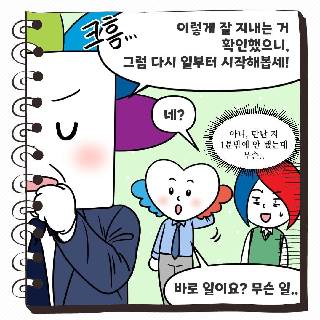 크흠.. 이렇게 잘 지내는 거 확인했으니, 그럼 다시 일부터 시작해봅세!