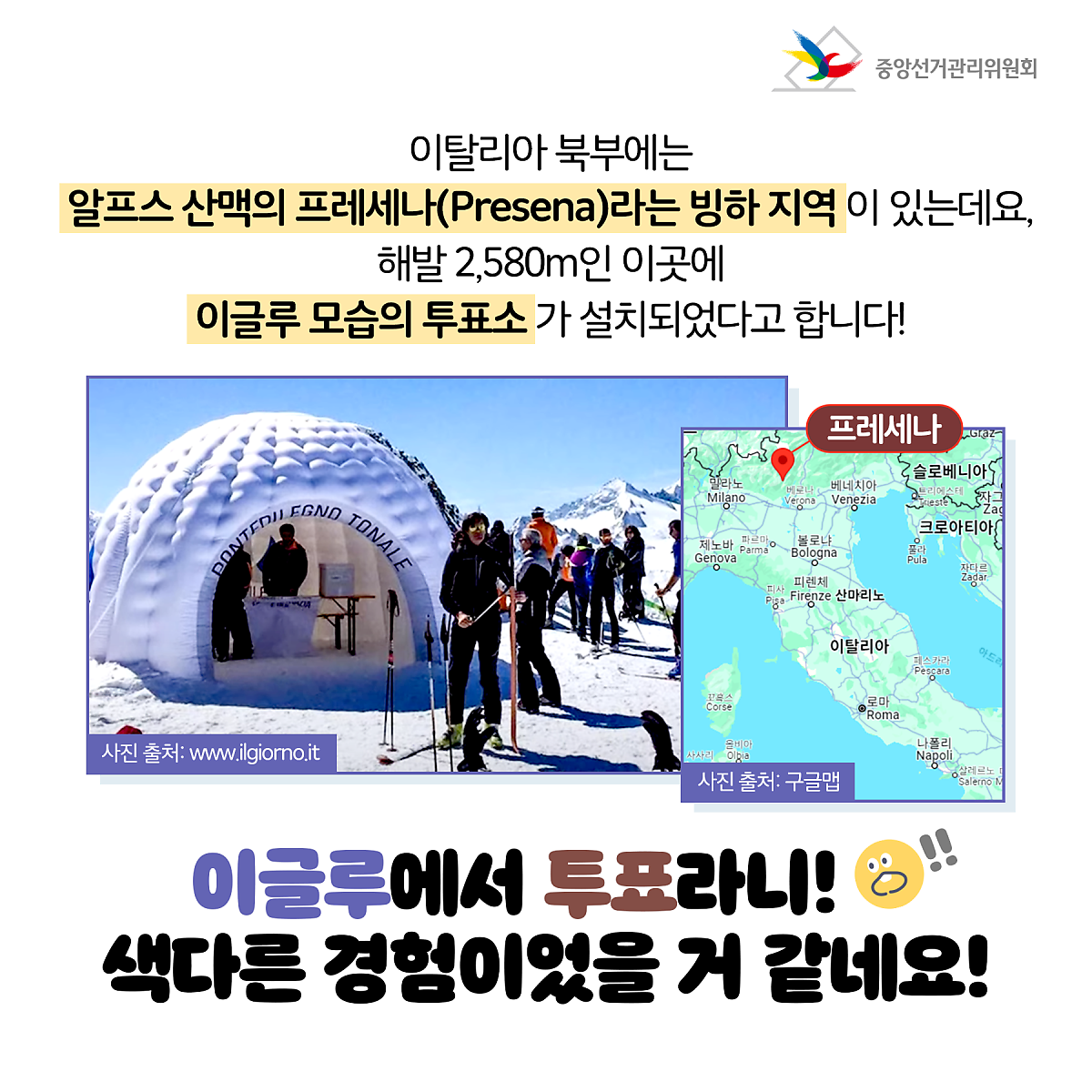 추운 날씨에도 불구하고 이글루 덕분에 따뜻하게 투표할 수 있었던 이탈리아의 이글루 투표!