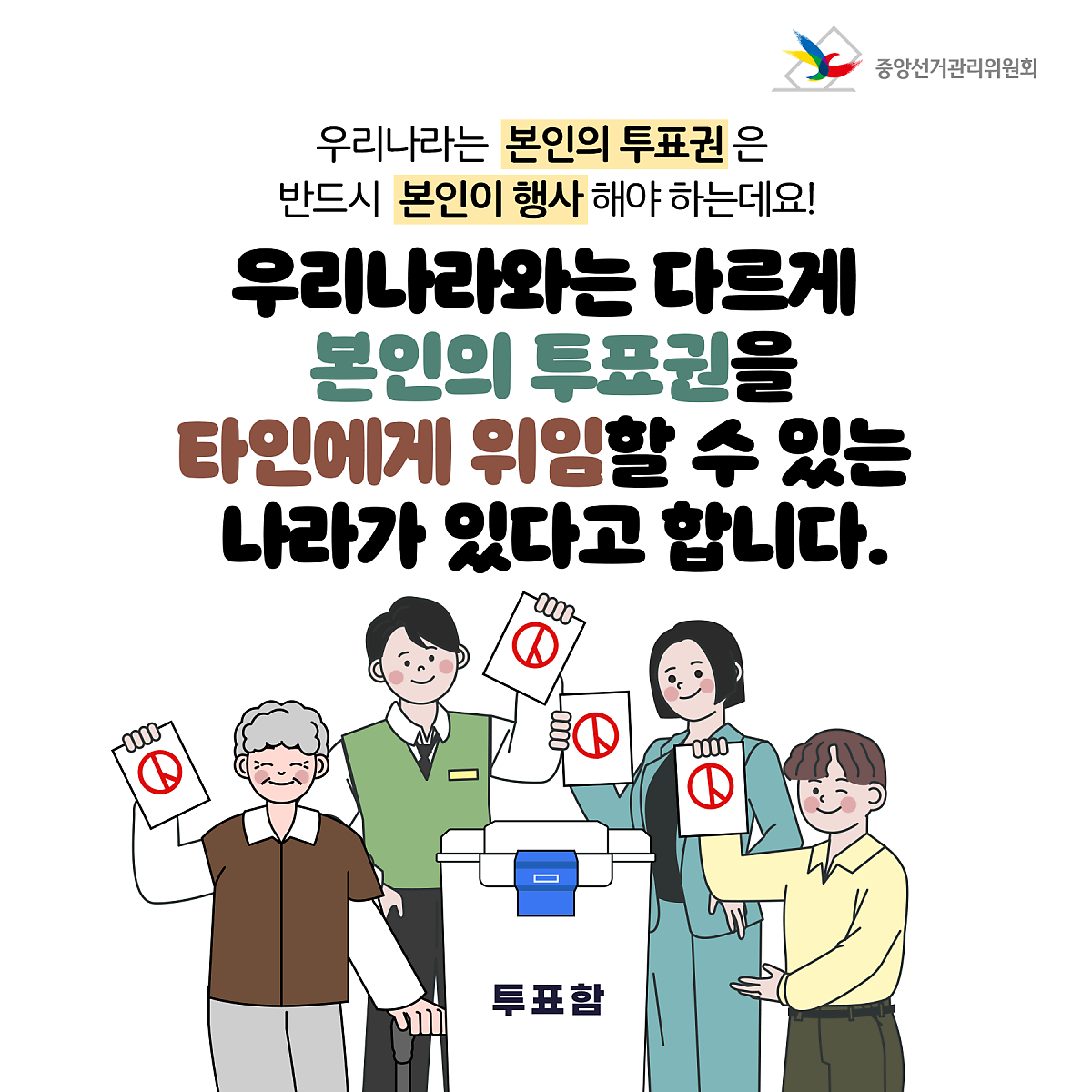 우리나라는 본인의 투표권은 반드시 본인이 행사해야 하는데요!