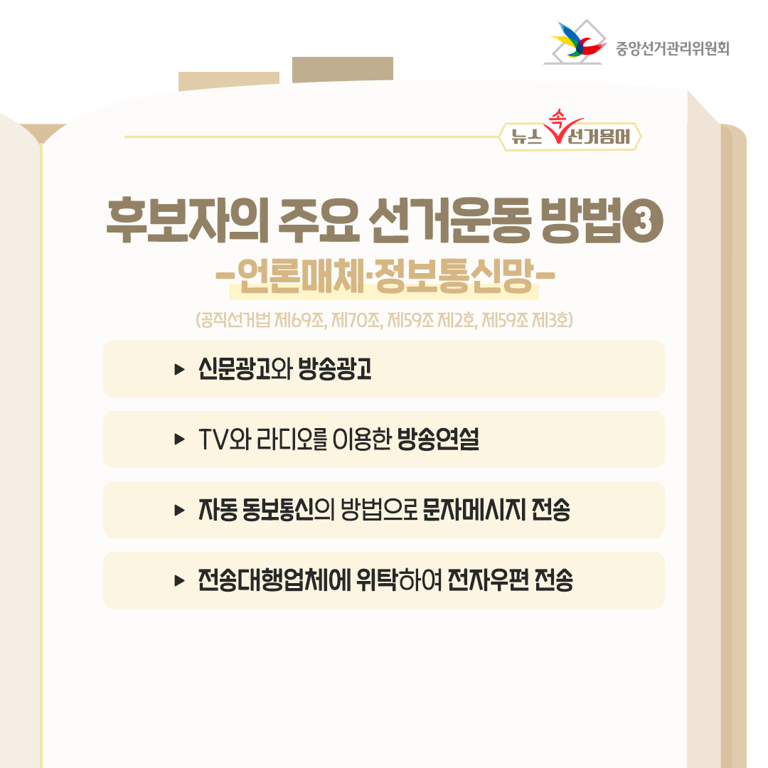 ③ 언론매체•정보통신망 (공직선거법 제69조, 제70조, 제59조 제2호, 제59조 제3호)