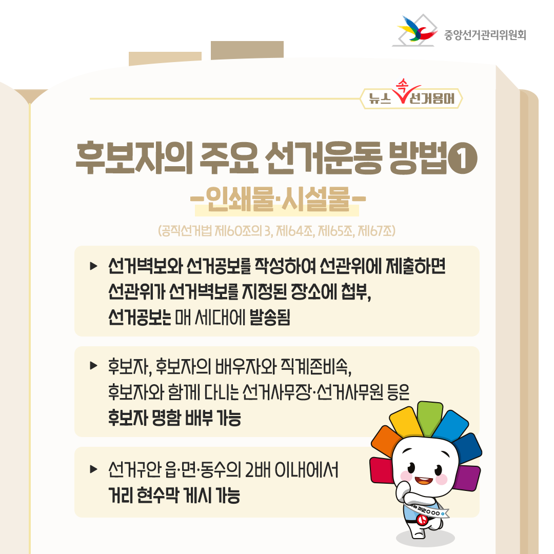 ① 인쇄물•시설물 활용 (공직선거법 제60조의 3, 제64조, 제65조, 제67조)