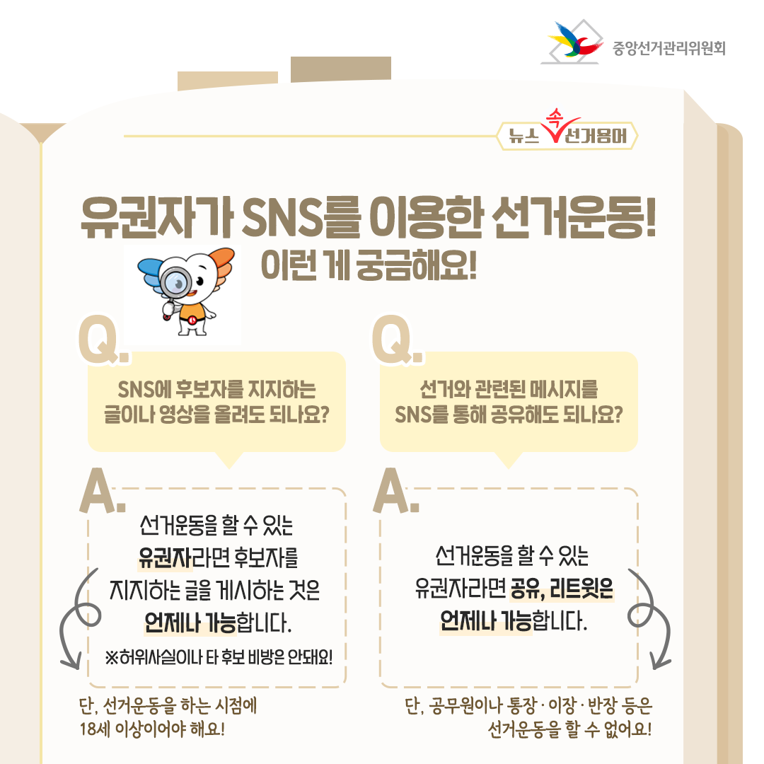 Q. SNS에 후보자를 지지하는 글이나 영상을 올려도 되나요?