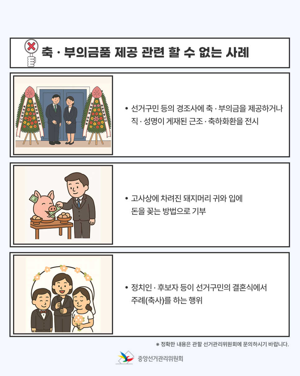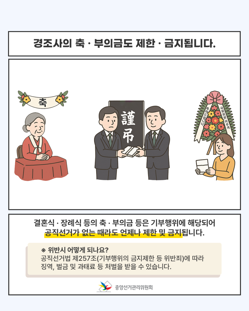 경조사의 축 · 부의금도 제한 · 금지됩니다.