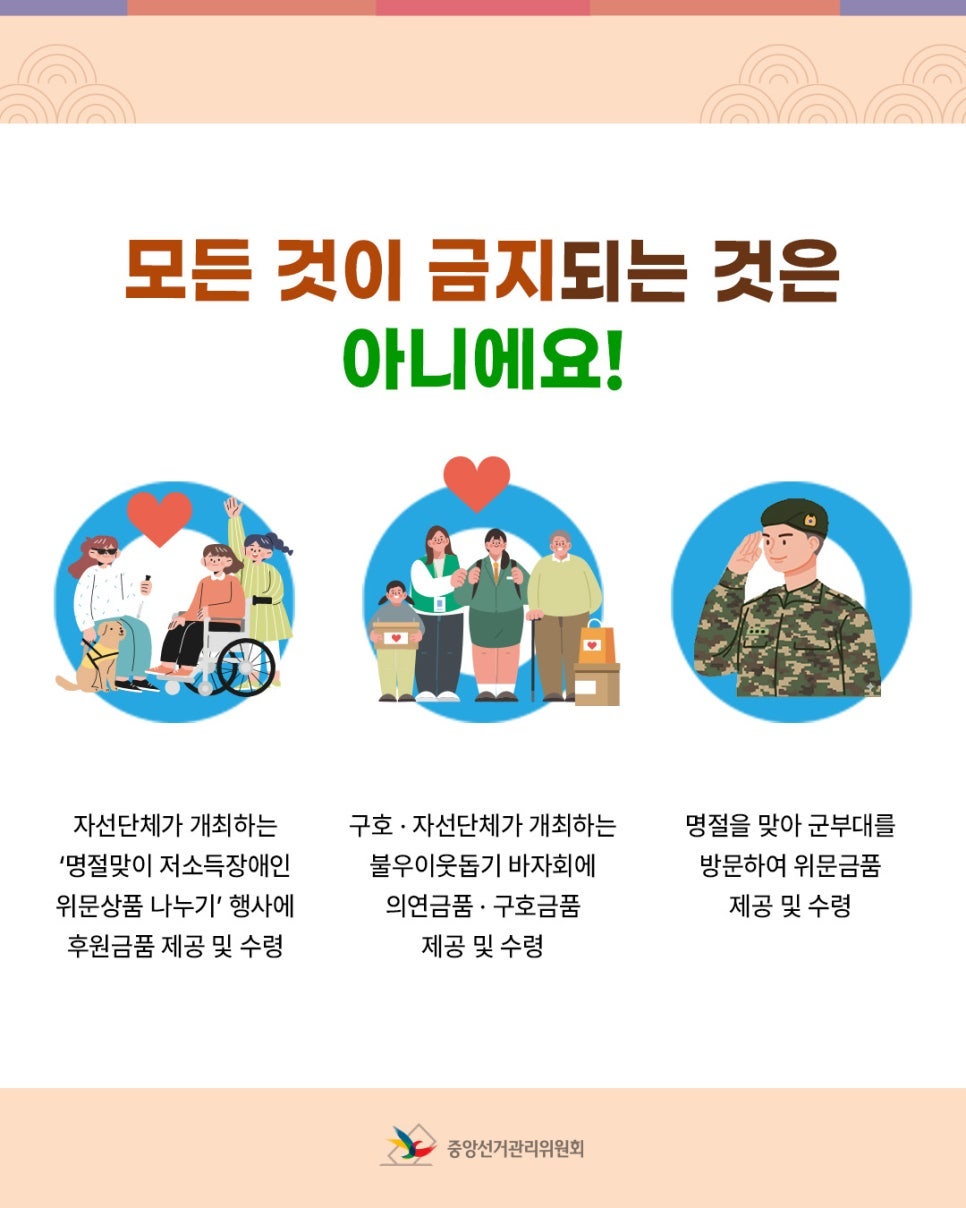 공직선거법은 정치인 · 후보자 등과의 선물 주고 받기 같은 기부행위를 상시 제한하고 있습니다.
