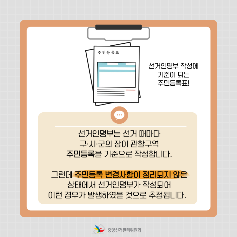 선거인명부는 선거 때마다 구··군의 장이 관할구역